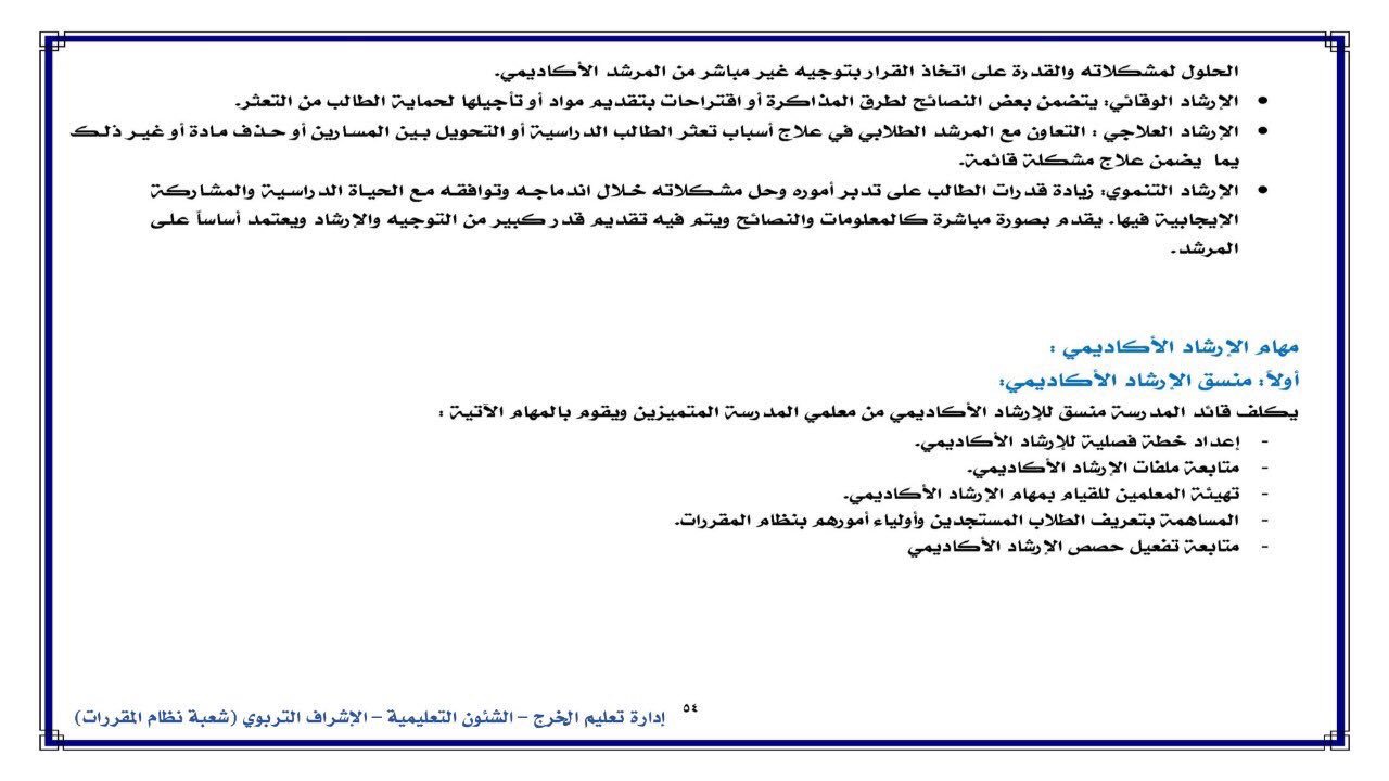 حقيبة منسق الارشاد الاكاديمي في مدارس نظام المقررات