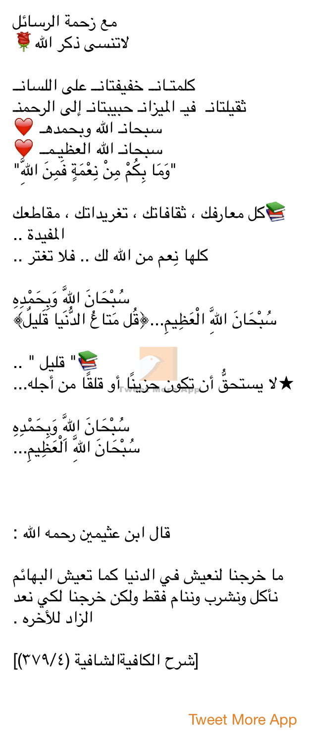 زمزم سرور A Twitter فمن ثقلت موازينه فهو في عيشة راضيه تريد ان تثقل موازينك قال النبي ان كلمتان خفيفتان على اللسان ثقيلتان في الميزان حبيبتان إلى الرحمن سبحان الله العظيم سبحان
