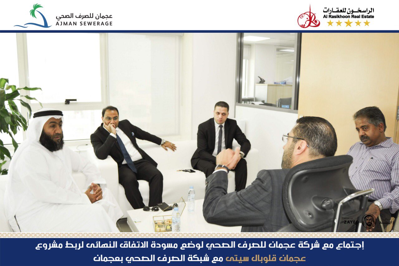 الراسخون للعقارات On Twitter قامت شركة الراسخون للعقارات بعقد اجتماع مع شركة عجمان للصرف الصحي في مكتب شركة عجمان للصرف الصحي لوضع مسودة الاتفاق النهائى لربط مشروع عجمان جلوبال سيتى مع شبكة