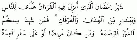 شهر رمضان الذي أنزل فيه القرآن هدى للناس وبينات من الهدى والفرقان فمن شهد منكم الشهر فليصمه موسوعة