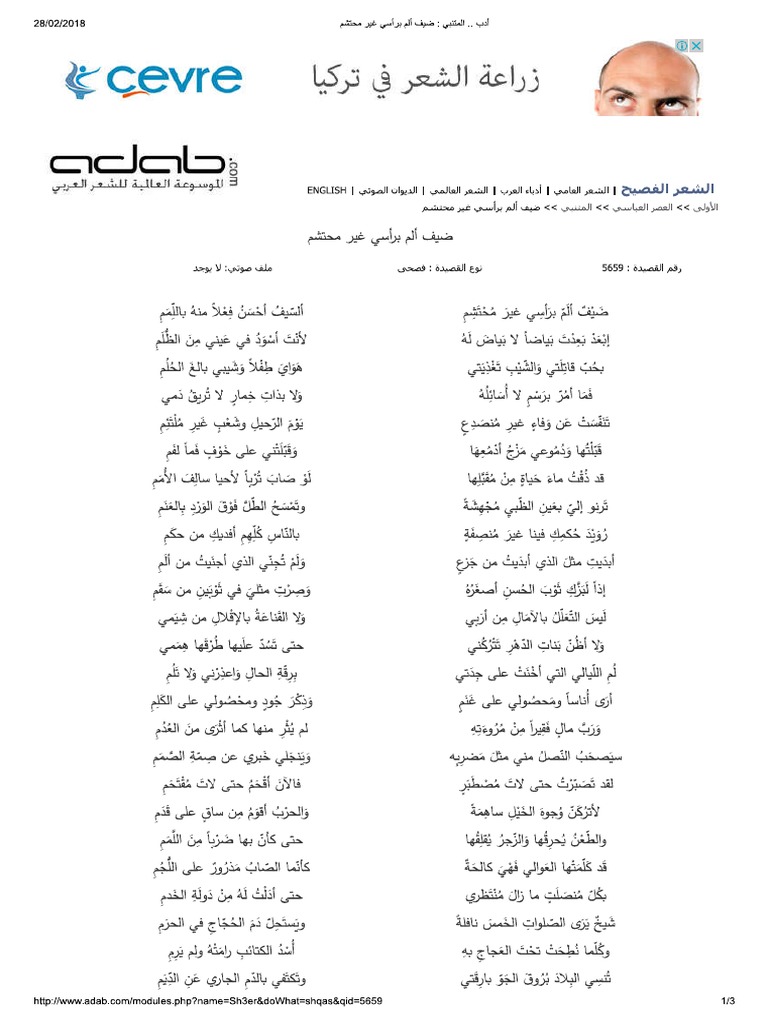 ضيف ألم برأسي غير محتشم المتنبي الديوان موسوعة الشعر العربي