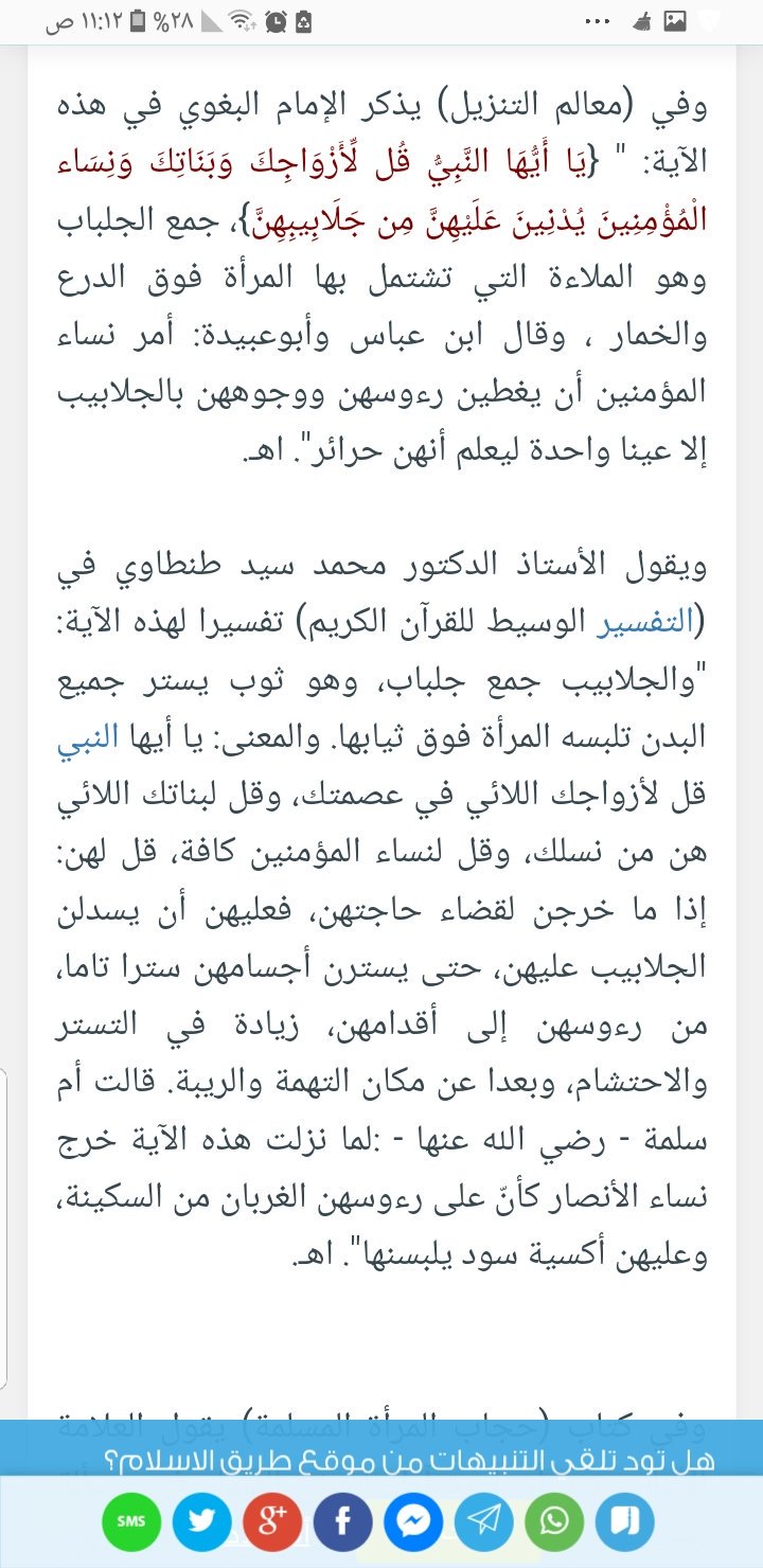 Uzivatel حديث القلم Na Twitteru يوجد أكثرمن آية ولكن أكتفي بواحدةوسوف أنقل لك في الصور كلام المفسرين عليها ١ قوله تعالى يا أيها النبي قل لأزواجك وبناتك ونساء المؤمنين يدنين عليهن من جلابيبهن ذلك
