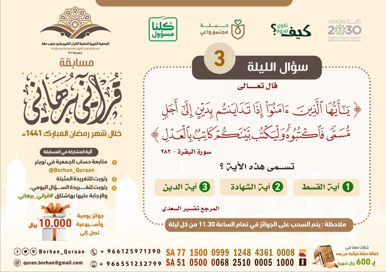 جمعية تحفيظ قرى جنوب مكة On Twitter س٣ قال تعالى يا أيها الذين امنو اذا تداينتم بدين الى اجل مسمى فاكتبوه البقرة٢٨٢ تسمى هذه الأية بـ 1 آية القسط 2 آية